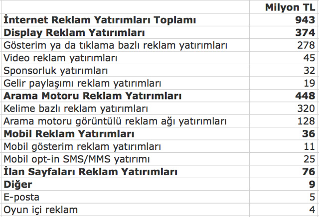 Dünyada dijital pazarlama ve iletişim sektörünün nabzını tutan IAB (Interactive Advertising Bureau) geçtiğimiz hafta Türkiye’nin dijital reklam harcamalarına ilişkin önemli bir rapor paylaştı. AdEx-2012 raporu’na göre, Türkiye’de dijital reklam yatırımları 2012’de bir önceki yıla göre 30% artışla 943 milyon TL oldu.